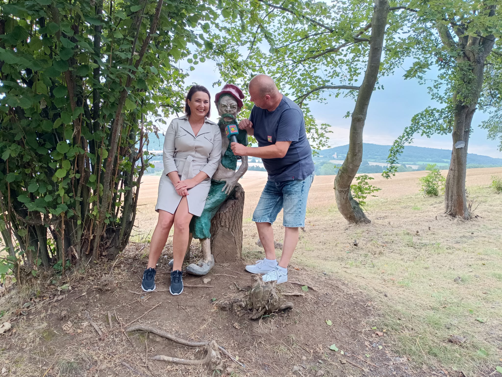 Po návštěvě hradu Hněvín zamířil Petr Brožík do nedalekých Hrobčic, kde navštívil stezku skřítka Hrobčíka. Tato kouzelná stezka je ideální pro rodiny s dětmi a nabízí mnoho interaktivních prvků a zábavných zastavení. Paní starostka Jana Syslová ho provedla stezkou a podělila se o příběhy a legendy spojené s tímto místem.