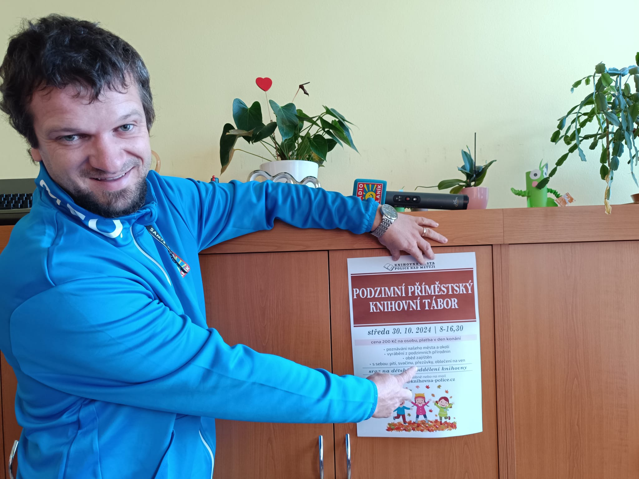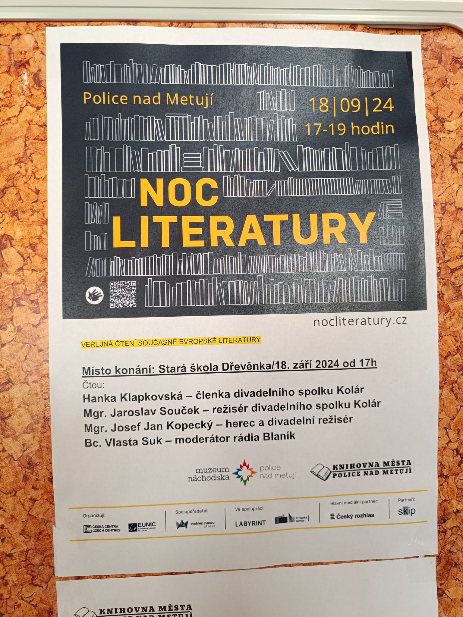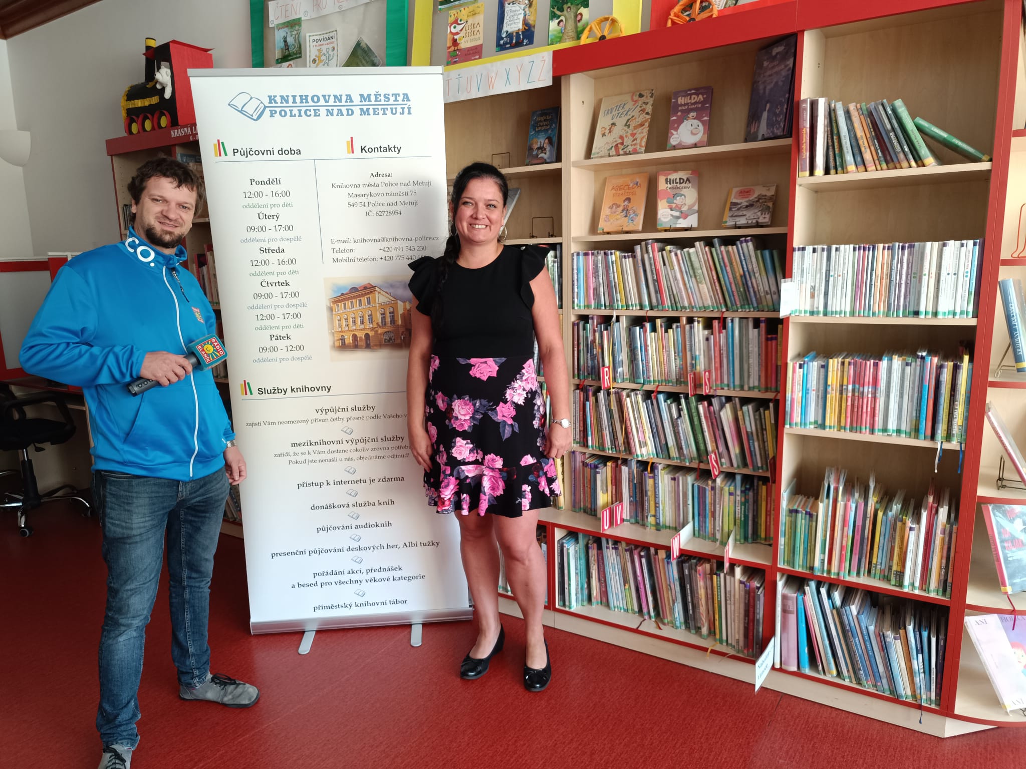 Vlasta se nejprve zastavil v knihovně v Polici nad Metují, kde ho přivítala ředitelka Anna Lukášková. Společně si povídali o již 18. ročníku oblíbené akce Noc literatury. Tento literární večer se každý rok těší velkému zájmu čtenářů a příznivců literatury. Anna Lukášková nadšeně představila letošní program a přiznala, že se opět můžeme těšit na večer plný skvělých příběhů a čtení.