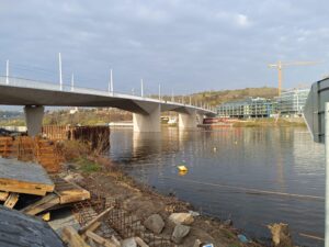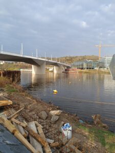 „Zajímal jsem se i o to, jak vlastně probíhala samotná stavba, protože výsledek je opravdu úchvatný,“ dodává s obdivem Vlasta. „Byla to nesmírně náročná práce, zejména co se týče zakládání pilířů přímo ve vltavském proudu. Most je navržený z bílého betonu v krásných plynulých křivkách, které odkazují na kubismus. Navíc se nezapomnělo ani na okolí – přímo pod mostem vznikají nové relaxační zóny.“