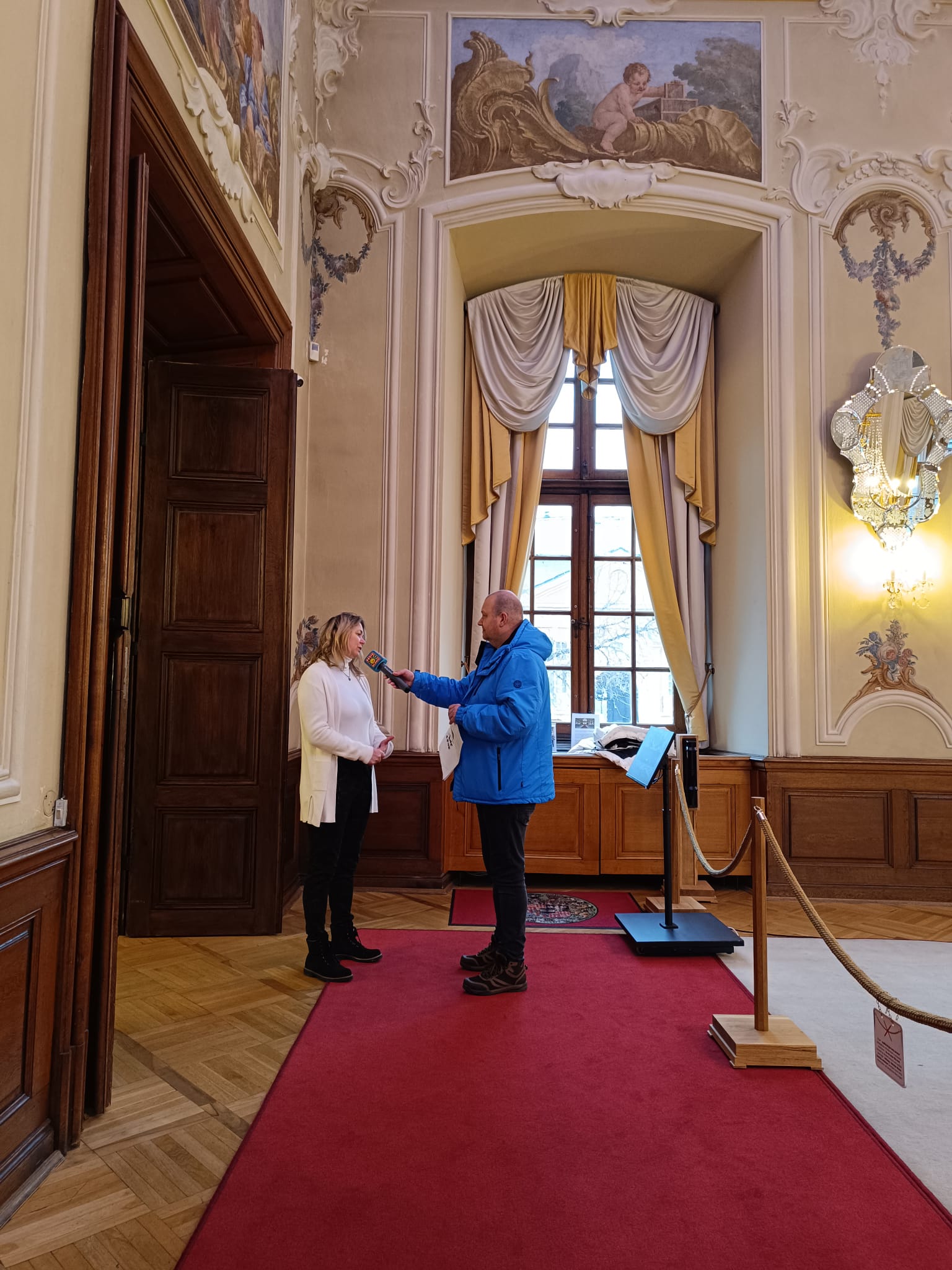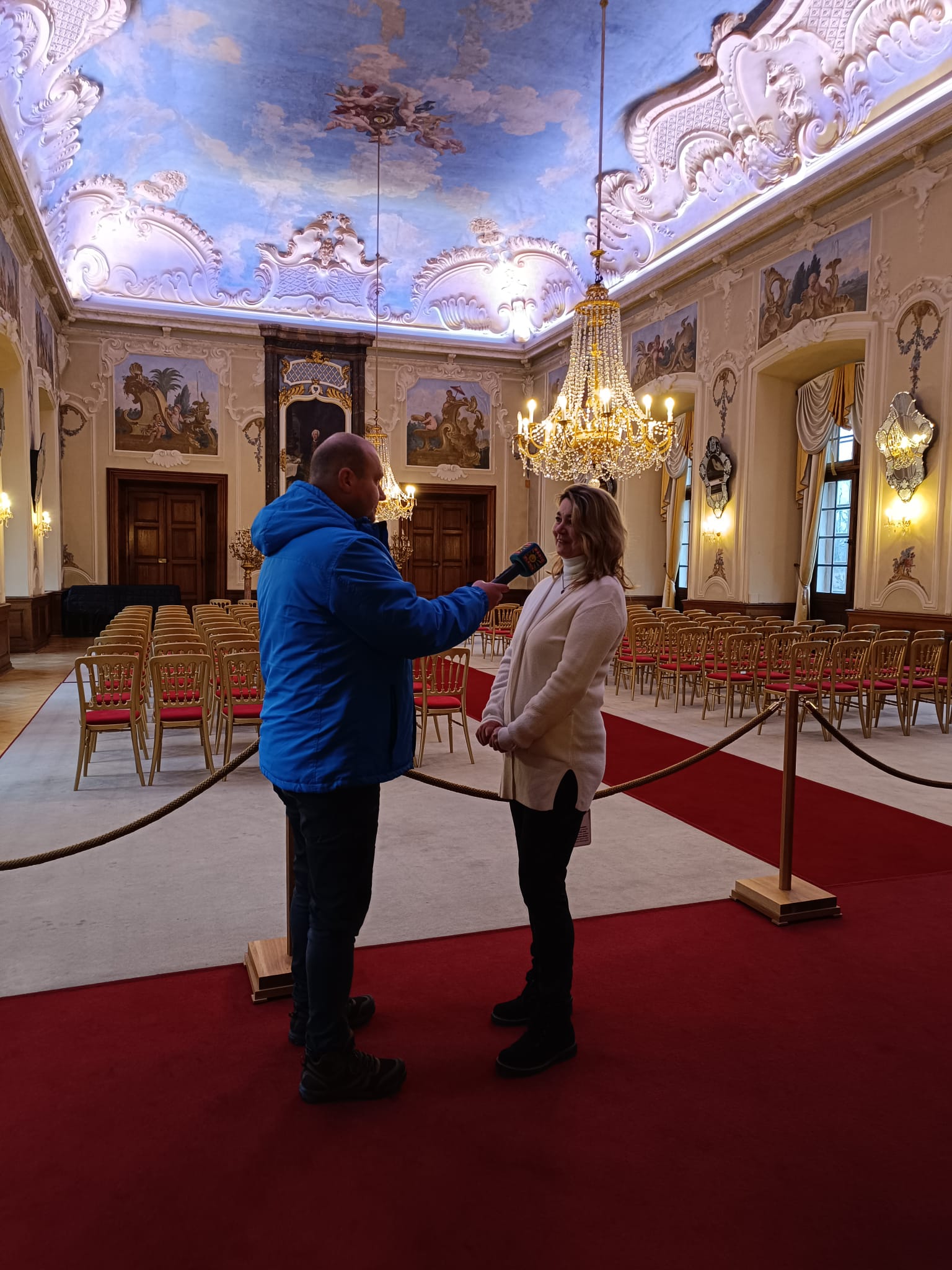 První zastávkou Petra byl Zámek Dobříš, který po několikaleté přestávce opět přivítal návštěvníky. „Zámek je otevřený i v zimě a nabízí zcela novou moderní a interaktivní prohlídku. Projdete se po červeném koberci a dozvíte se vše o historii rodu Colloredo-Mannsfeld,“ popsal Petr své dojmy. Zážitkem je i návštěva zrcadlového sálu, kde se natáčely pohádky a filmy. Zámecké parky jsou přístupné po celý rok. Více o zámku mu prozradila vedoucí návštěvnického centra Daniela Vondráčková.
