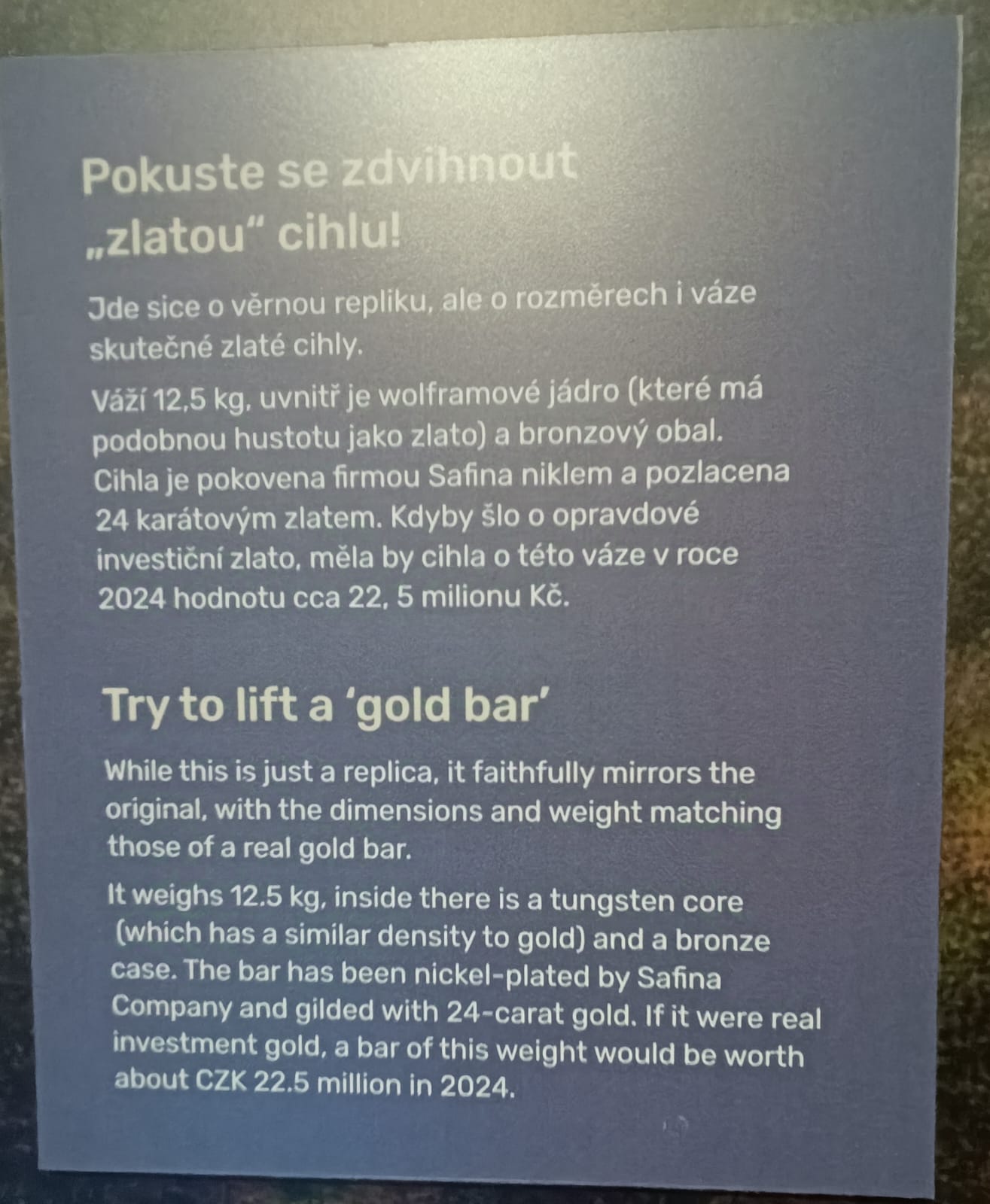 Naše třetí zastávka byla v Jílovém u Prahy, kde jsme navštívili Regionální muzeum. Aktuálně tu můžete vidět výstavu věnovanou trampingu, která vás přenese do dob, kdy se česká příroda stala druhým domovem pro generace trampů. Největším lákadlem muzea je však nová expozice o zlatu, která byla otevřena loni na podzim. Dozvíte se zde vše o historii těžby zlata v tomto regionu, prohlédnete si nádherné zlaté artefakty a dokonce si můžete potěžkat zlatou cihlu vážící téměř 13 kilogramů! Muzejní edukátorka Dana Hanka Chmelíková nám s nadšením vyprávěla příběhy zlaté horečky a ukázala, proč má Jílové své nezastupitelné místo v historii zlatnictví.